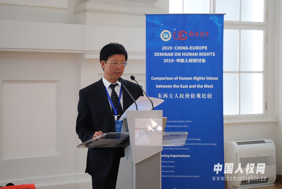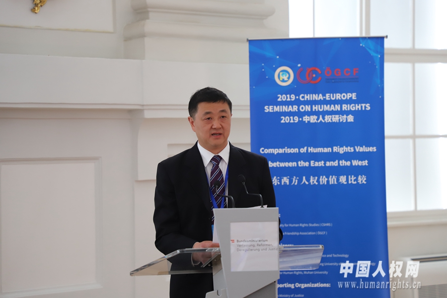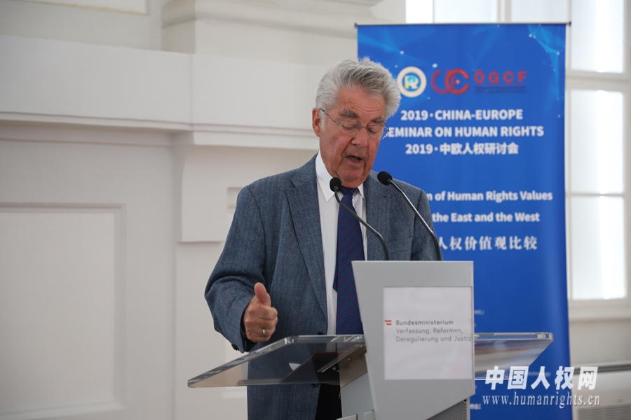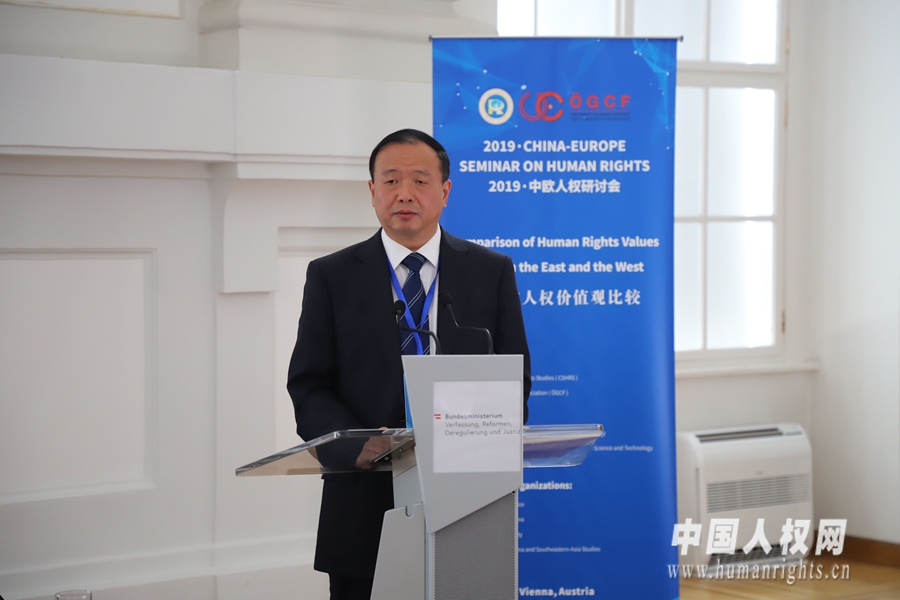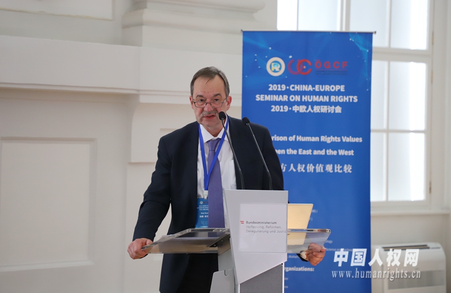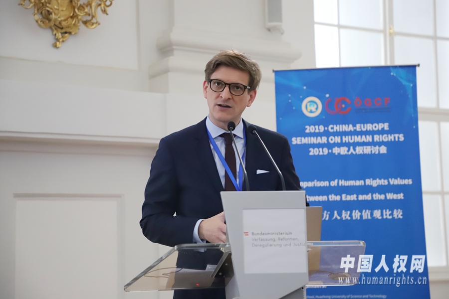 6月21日,由中國人權(quán)研究會和奧中友好協(xié)會共同舉辦的“2019·中歐人權(quán)研討會”在奧地利司法部舉行。研討會主題為“東西方人權(quán)價值觀比較”。”來自中歐人權(quán)領域的近100位專家學者、政府官員、社會組織代表圍繞人權(quán)的普遍性與特殊性、人類命運共同體的人權(quán)意義、人權(quán)價值觀的歷史及其演變、新中國的人權(quán)實踐及其世界意義等內(nèi)容進行了討論。