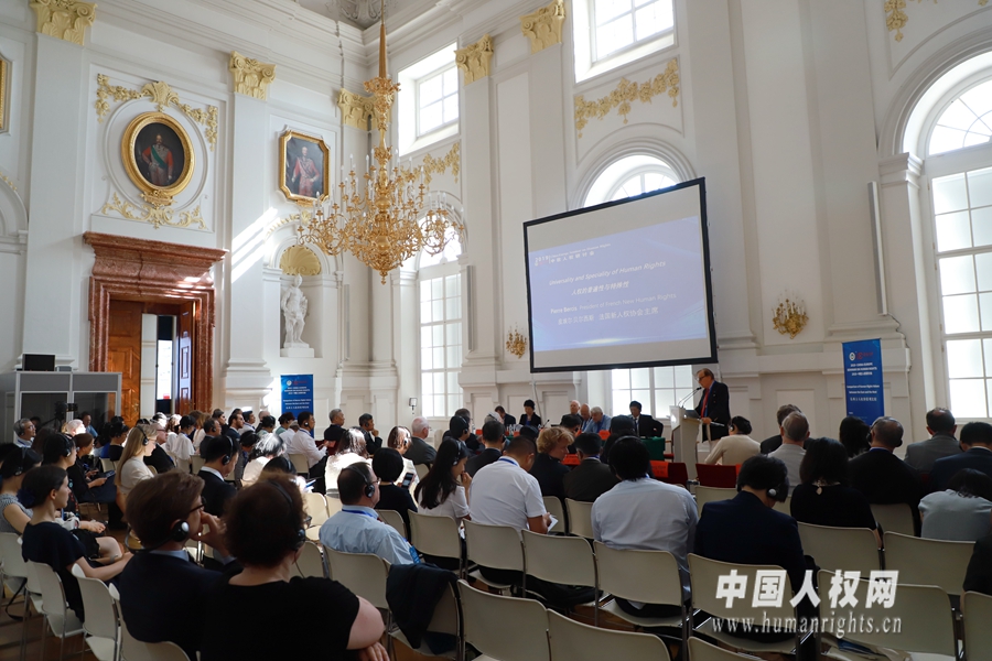 法國新人權(quán)協(xié)會主席皮埃爾·貝爾西斯作題為《人權(quán)的普遍性與特殊性》的大會發(fā)言。攝影 賈璞玉