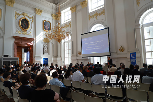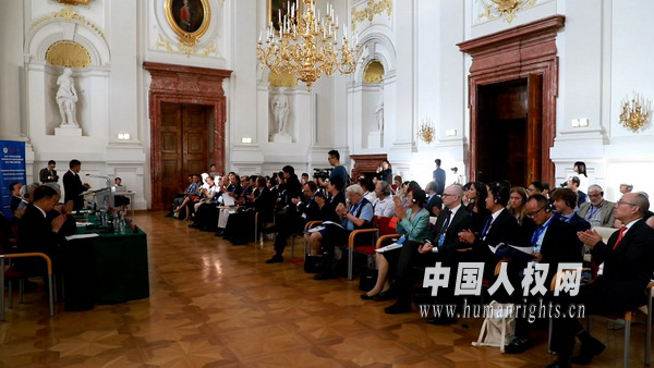 中國人權(quán)網(wǎng)6月25日訊 (賈璞玉)6月21日,由中國人權(quán)研究會和奧中友好協(xié)會共同舉辦的“2019•中歐人權(quán)研討會”在奧地利首都維也納舉行。來自中歐人權(quán)領(lǐng)域的近100位專家學(xué)者、政府官員、社會組織代表匯聚一堂,以“東西方人權(quán)價值觀比較”為主題,圍繞人權(quán)的普遍性與特殊性、人類命運共同體的人權(quán)意義、人權(quán)價值觀的歷史及其演變、新中國的人權(quán)實踐及其世界意義等內(nèi)容進(jìn)行了深入交流。