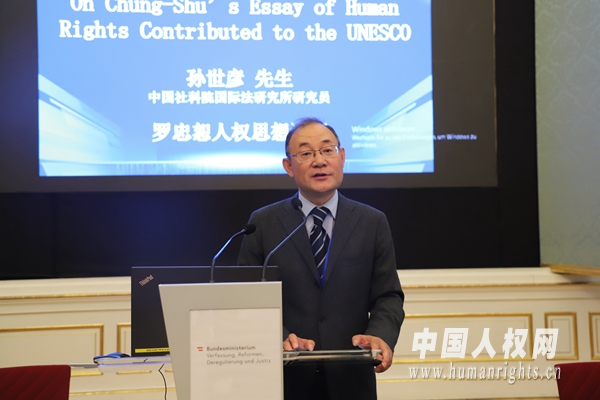 中國社科院國際法研究所研究員孫世彥在“主題三:人權(quán)價值觀的歷史及其演變”上作題為《羅忠恕人權(quán)思想譯評》的發(fā)言。
