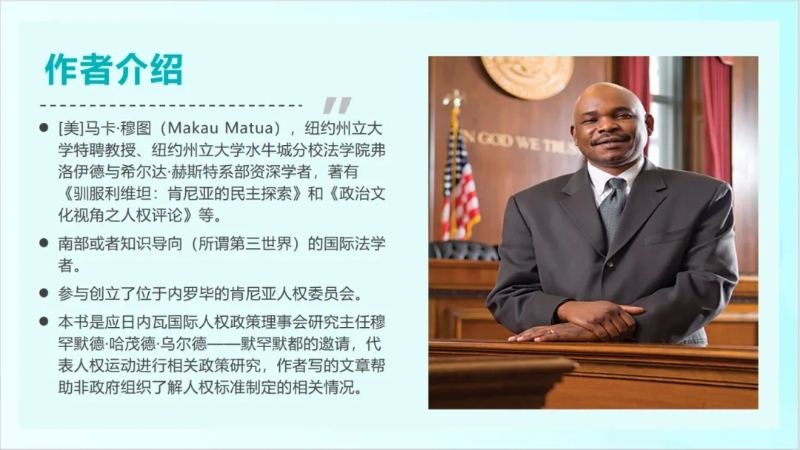 首先,趙老師向讀書會(huì)成員介紹了本書作者的知識(shí)背景、關(guān)注的主題,梳理了本書主題“人權(quán)標(biāo)準(zhǔn)”被提出的緣由與背景。作者馬卡·穆圖(Makau Matua),是紐約州立大學(xué)特聘教授、紐約州立大學(xué)水牛城分校法學(xué)院弗洛伊德與希爾達(dá)·赫斯特系部的資深學(xué)者,著有《馴服利維坦:肯尼亞的民主探索》和《政治文化視角之人權(quán)評(píng)論》等。該作者人生中大部分時(shí)間都在思考人權(quán)問題和推動(dòng)人權(quán)事業(yè),參與創(chuàng)立了位于內(nèi)羅畢的肯尼亞人權(quán)委員會(huì)。作者的思想路徑更多是“第三世界國際法途徑”,因此更關(guān)注第三世界在國際人權(quán)事業(yè)發(fā)展中的主體性問題。作者開篇提出移民問題、破壞性思潮的問題、氣候變暖、干旱、極端天氣等環(huán)境問題、自由主義國家處于深刻的道德、實(shí)踐和經(jīng)濟(jì)危機(jī)中等問題,都試圖讓人們審視傳統(tǒng)的人權(quán)概念與標(biāo)準(zhǔn),呼喚新的人權(quán)標(biāo)準(zhǔn)。因此,老師指出,本書通過考察不同標(biāo)準(zhǔn)及其背景,試圖了解標(biāo)準(zhǔn)制定涉及的各種過程,并從中吸取教訓(xùn);目的是發(fā)起和倡導(dǎo)新的人權(quán)標(biāo)準(zhǔn)制定的人權(quán)專家、人權(quán)非政府組織以及參與標(biāo)準(zhǔn)制定的政府間組織和政府部門官員提供包括新思維在內(nèi)的各式分析和指導(dǎo)。
