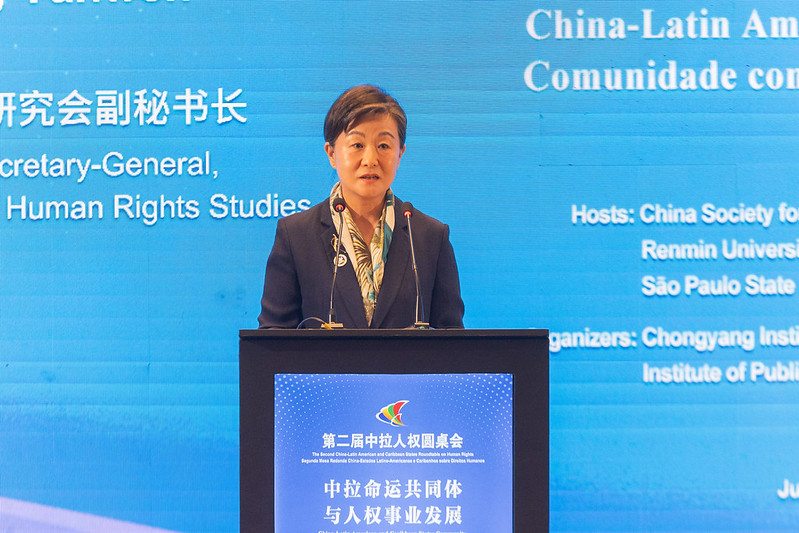 “第二屆中拉人權(quán)圓桌會(huì)”25日在巴西圣保羅舉辦。圖為中國(guó)人權(quán)研究會(huì)副秘書長(zhǎng)王琰文在開幕式上致辭。主辦方供圖