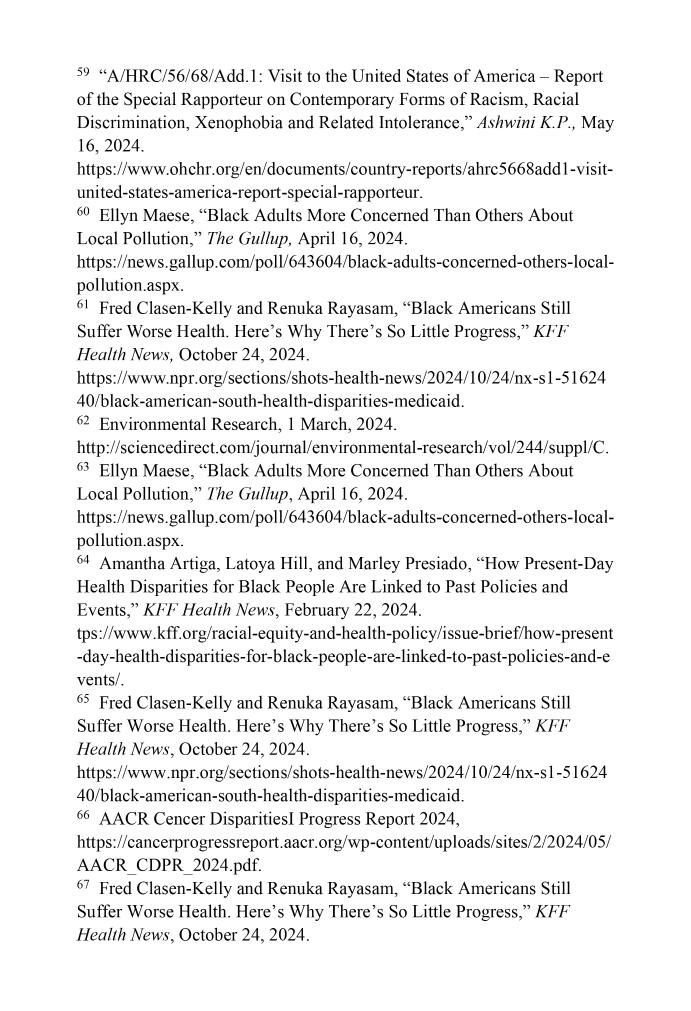 環(huán)境種族主義貽害無窮。聯(lián)合國人權(quán)專家2024年5月16日發(fā)布的報告指出,在美國“那些面臨著系統(tǒng)性不平等和種族主義狀況的群體承受著氣候和生態(tài)危機帶來的不成比例的惡劣影響”。59美國疾病控制與預(yù)防中心(Centers for Disease Control and Prevention)和美國肺臟協(xié)會等組織認為,不同種族生活環(huán)境的污染及其危害程度存在顯著差異,這是導(dǎo)致眾多健康狀況差異的根本原因。由于種族隔離和“紅線政策”等歷史原因,非洲裔更有可能暴露在有害或污染的環(huán)境中。60凱澤家庭基金會(Kaiser Family Foundation, KFF)2024年10月24日報道,美國近80%的城市固體廢物焚燒爐建造在非洲裔、拉美裔和低收入社區(qū),這可能導(dǎo)致癌癥等一系列惡性疾病高發(fā)。61《環(huán)境研究》(Environmental Research)2024年3月刊登的美國杜蘭大學(xué)、孟菲斯大學(xué)、路易斯安那州立大學(xué)3位學(xué)者聯(lián)合署名的一項研究結(jié)果指出,路易斯安那州“癌癥帶”(Cancer Alley)區(qū)域化學(xué)工廠密集,那里的人口以非洲裔為主,當(dāng)?shù)鼐用褚蚬I(yè)空氣污染罹患癌癥的風(fēng)險高居美國之首,是全國平均值的7倍多,空氣污染對當(dāng)?shù)卦挟a(chǎn)婦和新生兒健康的損害高達全國平均值的3倍。62蓋洛普公司(The Gullup)的調(diào)查結(jié)果顯示,環(huán)境污染正在使大量美國非洲裔流離失所。僅在2023年5月至2024年4月的12個月內(nèi),大約400萬非洲裔因污染不得不暫時搬遷,另有200萬人不得不永久搬遷。63