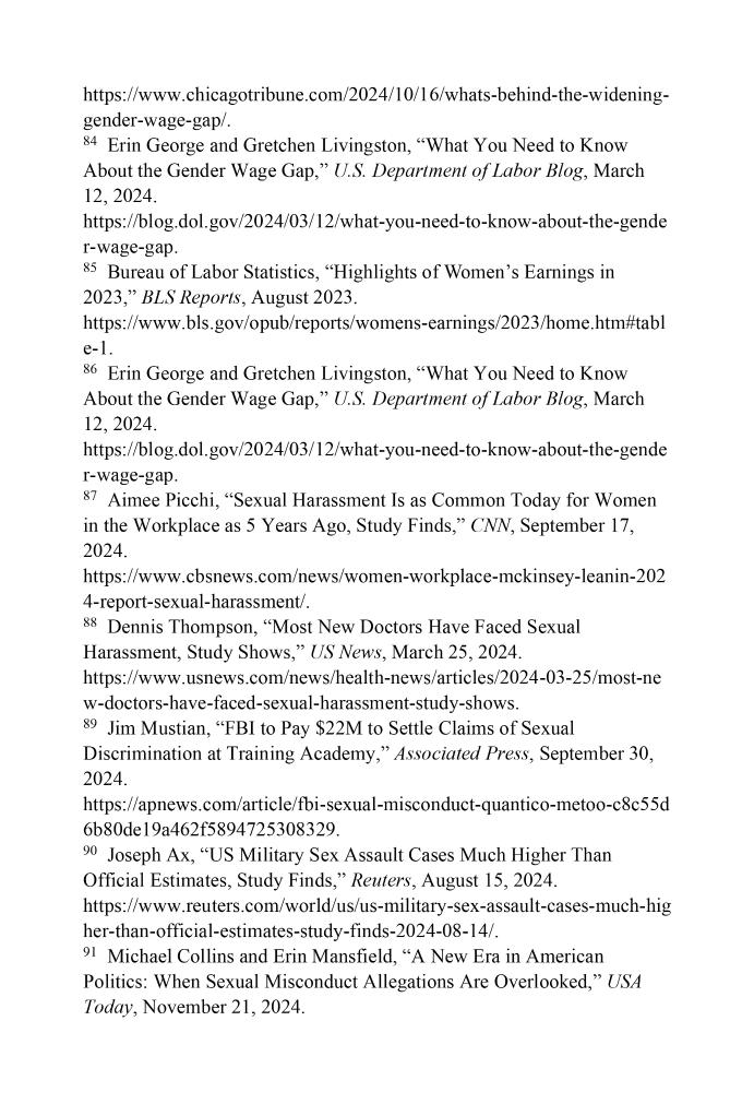多領(lǐng)域性侵害頑疾難除。性騷擾在美國企業(yè)司空見慣。約40%的職業(yè)女性在職業(yè)生涯中遭遇過性騷擾,即便舉報也不會得到有效處理。87實習(xí)醫(yī)生遭遇的性騷擾率高得驚人。研究顯示,美國超過一半的新醫(yī)生在工作第一年就受到性騷擾。88美國聯(lián)邦調(diào)查局為平息一起新入職女性遭遇性騷擾的集體訴訟,同意支付超過2200萬美元的和解費用。而該案并非個例,該案代理律師戴維·謝弗(David J.Shaffer)指出,性騷擾在聯(lián)邦調(diào)查局內(nèi)普遍存在。89根據(jù)布朗大學(xué)沃森國際與公共事務(wù)研究所戰(zhàn)爭成本項目2024年8月發(fā)布的研究報告,2023年在美國軍隊中發(fā)生的性侵案件為73695起,是官方披露數(shù)據(jù)的2倍多;在阿富汗戰(zhàn)爭的20年中,平均每年有近四分之一的現(xiàn)役女性遭受過性侵。90多位背負性行為不端指控的人被提名進入美國政府。性別研究專家指出,此舉讓大多數(shù)面臨性騷擾或性侵犯的婦女不再相信司法系統(tǒng)會懲罰性侵者。91