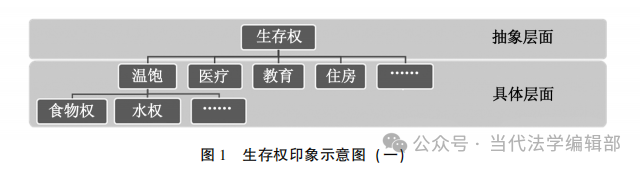 以上印象都對生存權的內(nèi)容與邊界進行了拓展細化,從形式上也能實現(xiàn)一定程度的自洽。然而,第一種印象盡管避免因簡單相加造成的重疊性,但也將生存權“架空”到抽象層面,同樣無宜于說明生存權存在的意義;第二種印象固然保證了生存權的具體性,但卻消解甚至侵占了其他人權在人權體系中的生態(tài)位。