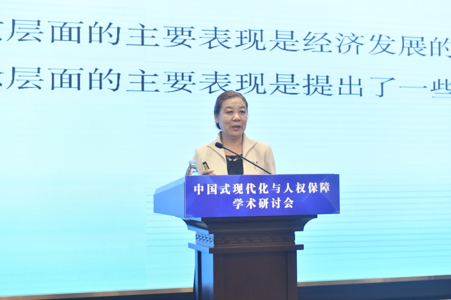 “中國式現(xiàn)代化與人權保障”學術研討會16日在山東濟南舉行。圖為北京大學國際關系學院教授羅艷華作題為《中國式現(xiàn)代化的本質特征及對全球人權治理的理念引領》的大會發(fā)言。主辦方供圖