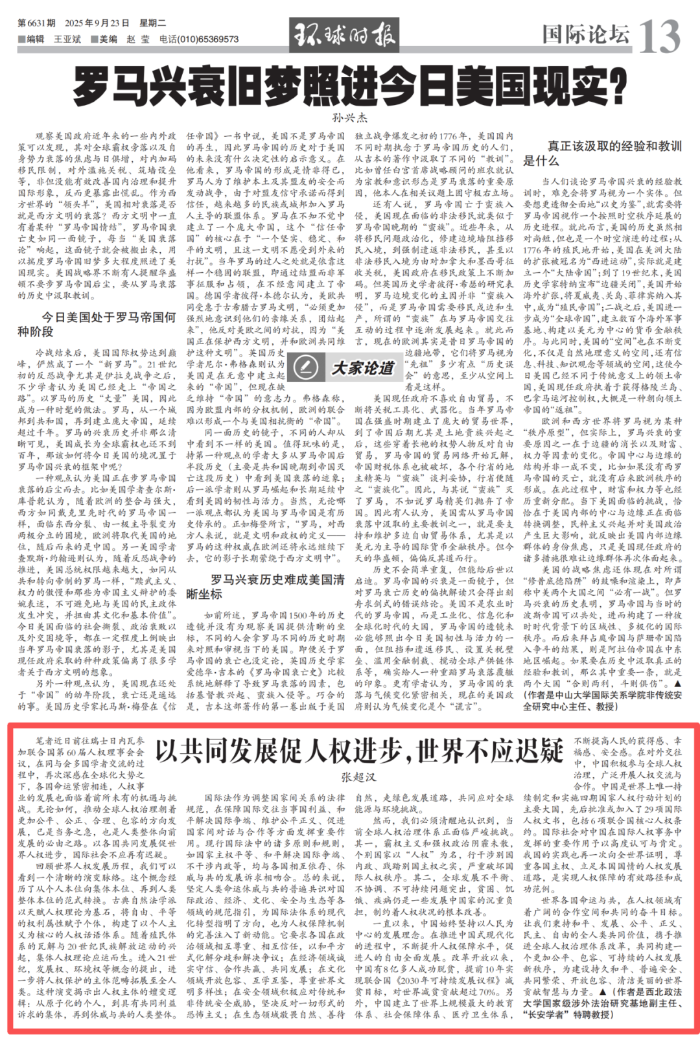 筆者近日前往瑞士日內(nèi)瓦參加聯(lián)合國第60屆人權(quán)理事會會議,在同與會多國學(xué)者交流的過程中,再次深感在全球化大勢之下,各國命運緊密相連,人權(quán)事業(yè)的發(fā)展也面臨著前所未有的機遇與挑戰(zhàn)。無論如何,推動全球人權(quán)治理朝著更加公平、公正、合理、包容的方向發(fā)展,已是當(dāng)務(wù)之急,也是人類整體向前發(fā)展的必由之路。以各國共同發(fā)展促世界人權(quán)進步,國際社會不應(yīng)再有遲疑。