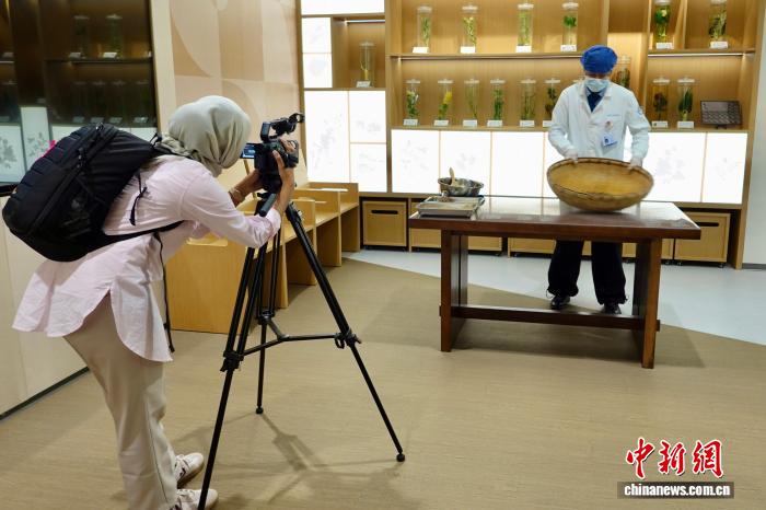 9月24日,來(lái)自馬來(lái)西亞、印度尼西亞、老撾、越南、緬甸以及中國(guó)的專(zhuān)家學(xué)者、媒體人走進(jìn)位于浙江的杭州市中醫(yī)院,體驗(yàn)中醫(yī)文化和智慧醫(yī)療服務(wù)。外籍嘉賓拍攝記錄手工泛丸過(guò)程。中新社記者 劉子琳 攝