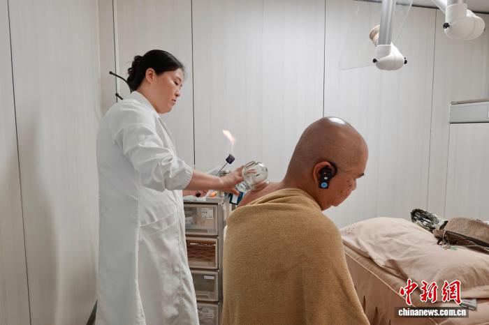 9月24日,來(lái)自馬來(lái)西亞、印度尼西亞、老撾、越南、緬甸以及中國(guó)的專(zhuān)家學(xué)者、媒體人走進(jìn)位于浙江的杭州市中醫(yī)院,體驗(yàn)中醫(yī)文化和智慧醫(yī)療服務(wù)。外籍嘉賓體驗(yàn)拔罐。中新社記者 劉子琳 攝