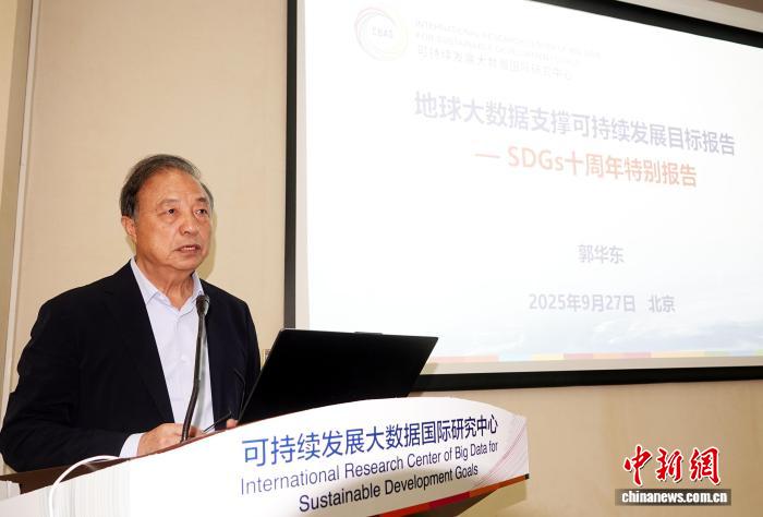 中國(guó)科學(xué)院院士、可持續(xù)發(fā)展大數(shù)據(jù)國(guó)際研究中心主任郭華東解讀《地球大數(shù)據(jù)支撐可持續(xù)發(fā)展目標(biāo)報(bào)告——SDGs十周年特別報(bào)告》?!≈行戮W(wǎng)記者 孫自法 攝