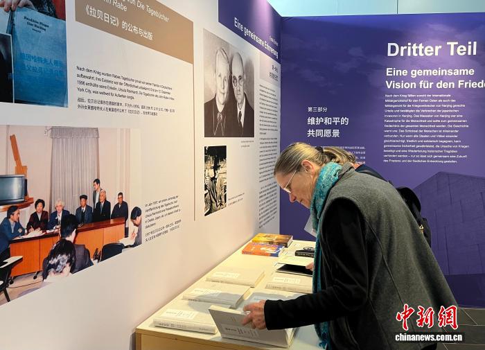 當(dāng)?shù)貢r(shí)間9月29日,“世界記憶 和平愿景——約翰·拉貝等德國(guó)人士見(jiàn)證的南京大屠殺”主題展覽在柏林中國(guó)文化中心開(kāi)幕。圖為觀眾觀展。中新社記者 馬秀秀 攝