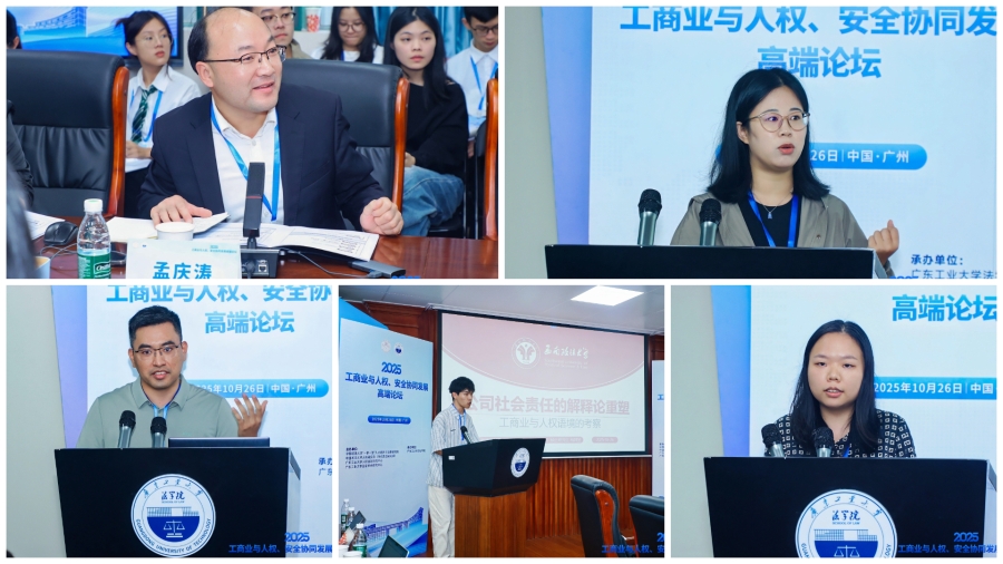 2025年10月26日,由中國政法大學(xué)“一帶一路”人才培養(yǎng)與法律研究院、中國政法大學(xué)人權(quán)研究院(當(dāng)代法治研究院)、廣東工業(yè)大學(xué)人權(quán)法治研究中心、廣東工業(yè)大學(xué)國家安全研究中心主辦,廣東工業(yè)大學(xué)法學(xué)院承辦的“2025年工商業(yè)與人權(quán)、安全協(xié)同發(fā)展高端論壇”在廣東工業(yè)大學(xué)法學(xué)院成功舉辦。來自中國政法大學(xué)、奧斯陸大學(xué)、香港中文大學(xué)(深圳)、澳門大學(xué)、中國人民大學(xué)、復(fù)旦大學(xué)、南開大學(xué)、西北大學(xué)、蘭州大學(xué)、西北政法大學(xué)、西南政法大學(xué)、云南大學(xué)、首都經(jīng)濟(jì)貿(mào)易大學(xué)、上海海事大學(xué)、浙江理工大學(xué)、湖北經(jīng)濟(jì)學(xué)院、汕頭大學(xué)、廣州大學(xué)、廣州航海學(xué)院等高校的超過80位專家學(xué)者和廣東工業(yè)大學(xué)法學(xué)院師生齊聚一堂,圍繞工商業(yè)與人權(quán)教育教學(xué)、企業(yè)人權(quán)盡責(zé)、國際合規(guī)標(biāo)準(zhǔn)及安全、科技協(xié)同發(fā)展等方面進(jìn)行了深入探討。