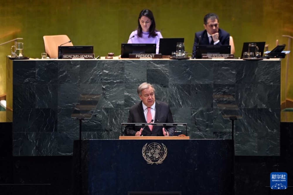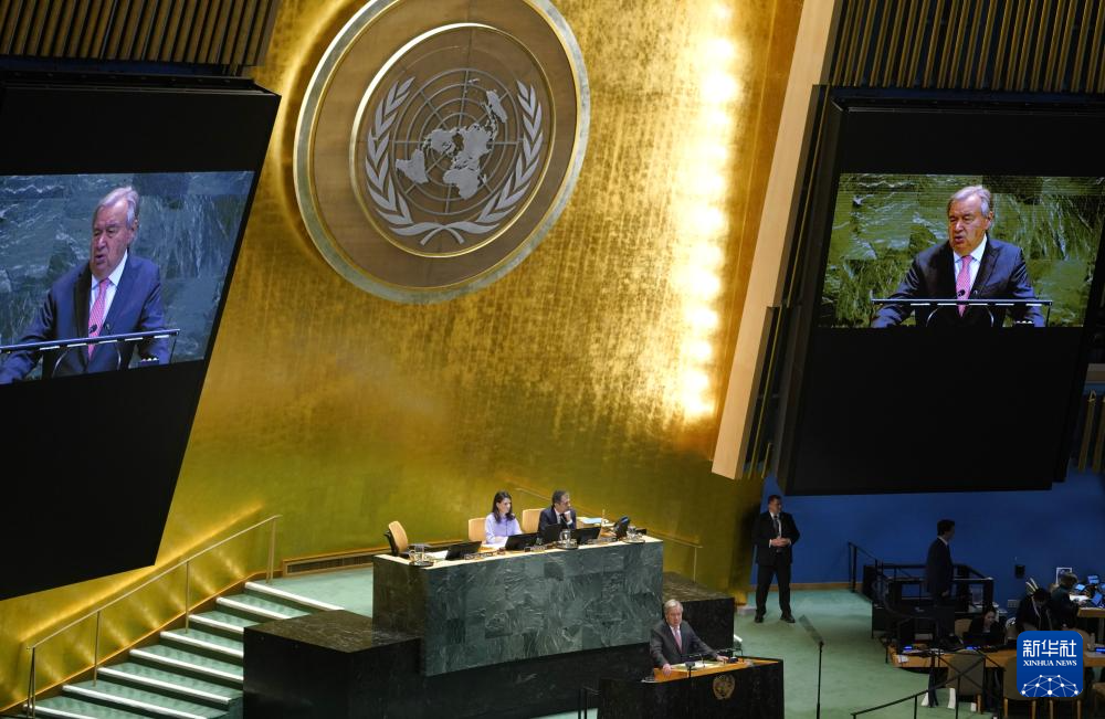 9月22日,在位于紐約的聯(lián)合國總部,聯(lián)合國秘書長古特雷斯在紀念北京世婦會30周年高級別會議上講話。新華社記者 李睿 攝