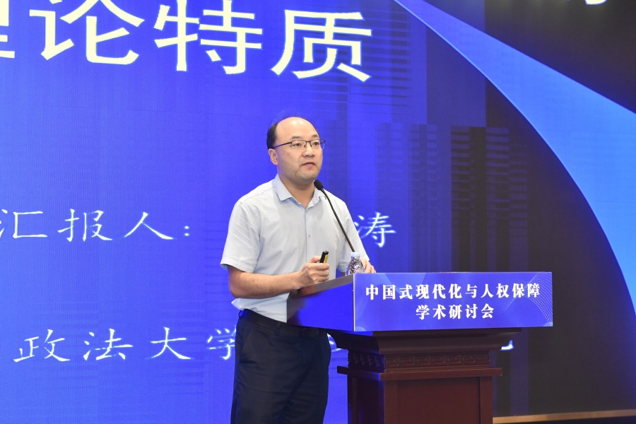 “中國(guó)式現(xiàn)代化與人權(quán)保障”學(xué)術(shù)研討會(huì)16日在山東濟(jì)南舉行。圖為西南政法大學(xué)人權(quán)研究院教授、《人權(quán)法學(xué)》副主編孟慶濤在“平行論壇(一)上半場(chǎng):中國(guó)式現(xiàn)代化進(jìn)程中的人權(quán)理論創(chuàng)新”作題為《當(dāng)代中國(guó)人權(quán)話語(yǔ)的理論特質(zhì)》的發(fā)言。主辦方供圖
