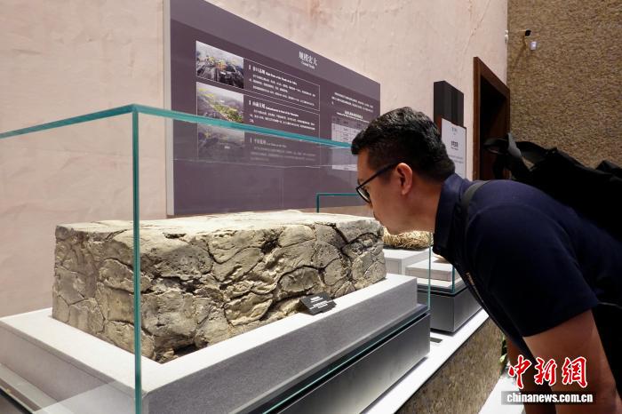 圖為外籍嘉賓觀看曾用于修筑水利設施的草裹泥切塊。中新社記者 劉子琳 攝