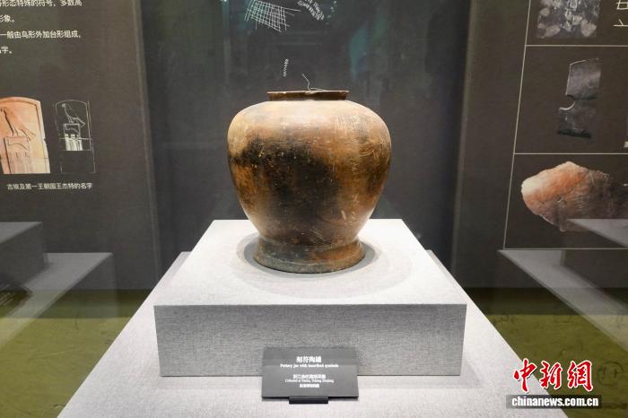 圖為刻符陶罐。中新社記者 劉子琳 攝
