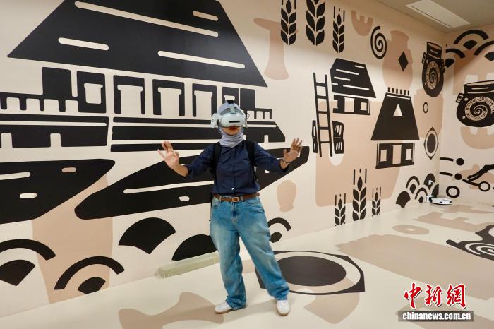 圖為外籍嘉賓在杭州良渚古城遺址公園體驗VR項目。中新社記者 劉子琳 攝
