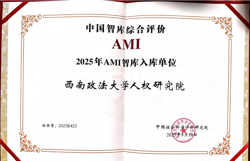 此外,西南政法大學人權研究院還在本次評選中入選“2025年AMI智庫入庫單位”,是該院在中國特色新型智庫建設方面再次獲得的權威認可。