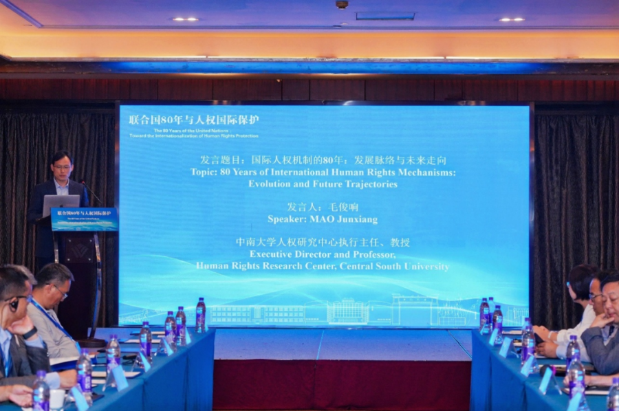 10月18日,“聯(lián)合國(guó)80年與人權(quán)國(guó)際保護(hù)”國(guó)際研討會(huì)在湖南長(zhǎng)沙成功召開。本次研討會(huì)由中南大學(xué)主辦、中南大學(xué)人權(quán)研究中心(國(guó)家人權(quán)教育與培訓(xùn)基地)承辦,來(lái)自聯(lián)合國(guó)人權(quán)事務(wù)高級(jí)專員辦事處及中國(guó)、英國(guó)、德國(guó)、愛(ài)爾蘭、俄羅斯、土耳其、也門、南非、乍得等國(guó)際機(jī)構(gòu)和國(guó)家的近50名專家學(xué)者參與會(huì)議。與會(huì)代表聚焦“聯(lián)合國(guó)八十年人權(quán)歷程的回顧與前瞻”、“國(guó)際人權(quán)機(jī)制的發(fā)展與貢獻(xiàn)”、“人權(quán)普遍性的全球和地方視角”等重要議題進(jìn)行了廣泛交流與研討。