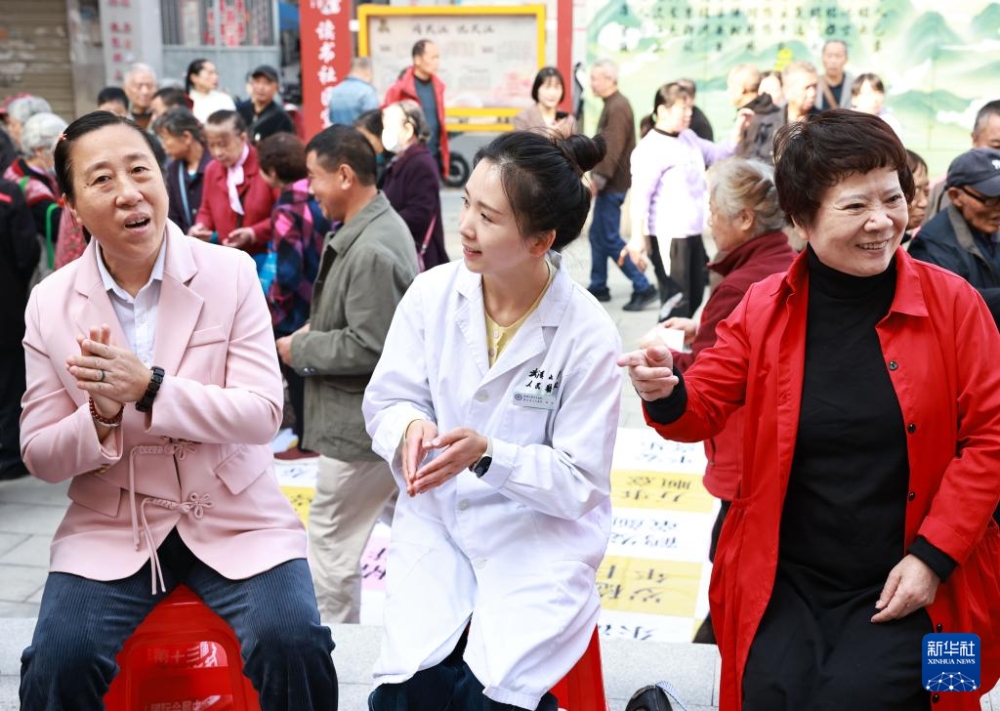 10月28日,河南省焦作市溫縣的醫(yī)務(wù)工作者為老人義診。新華社發(fā)(徐宏星攝)